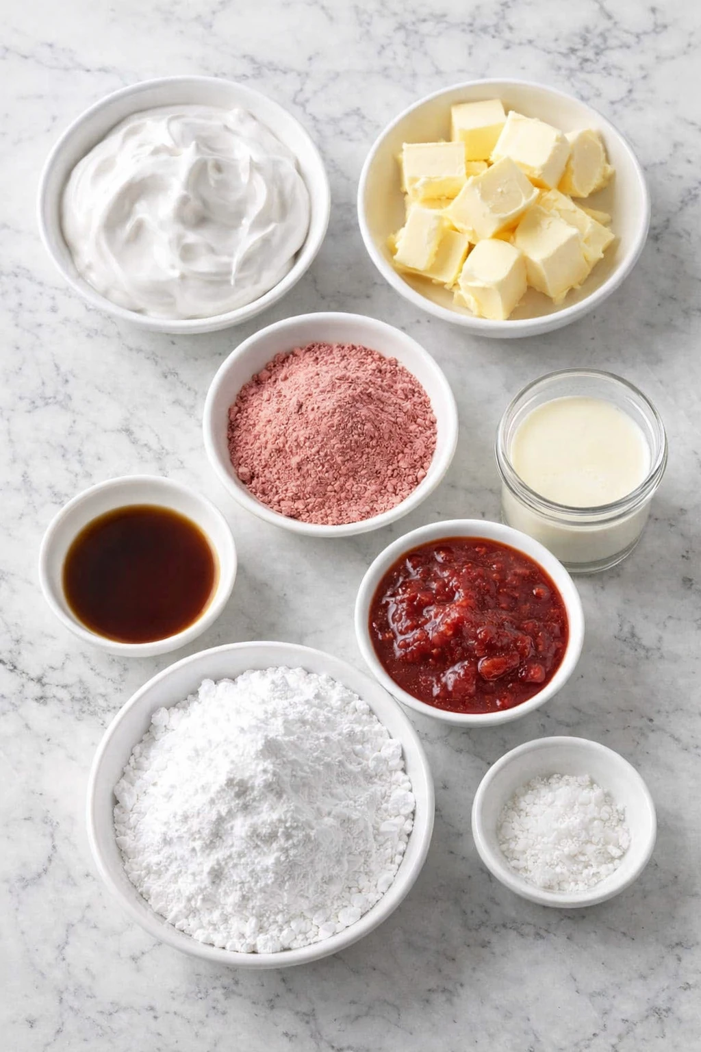 - Strawberry jam or puree (optional) – Deepens the berry flavor and adds a touch of shine. Use a small amount so the frosting doesn’t become too loose.