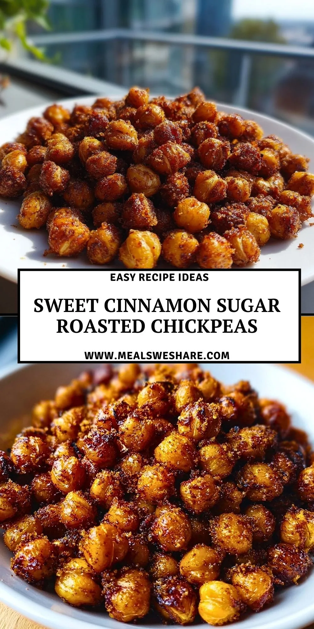 Sweet Cinnamon Sugar Roasted Chickpeas are the ultimate quick snack: easy, crunchy, warm, and comforting. Whether you’re seeking a protein-packed treat, a better-for-you dessert topper, or something to satisfy a mid-day sweet craving, this recipe will be your new go-to. For more sweet snack inspiration, check out my Pinterest board: Meals We Share.