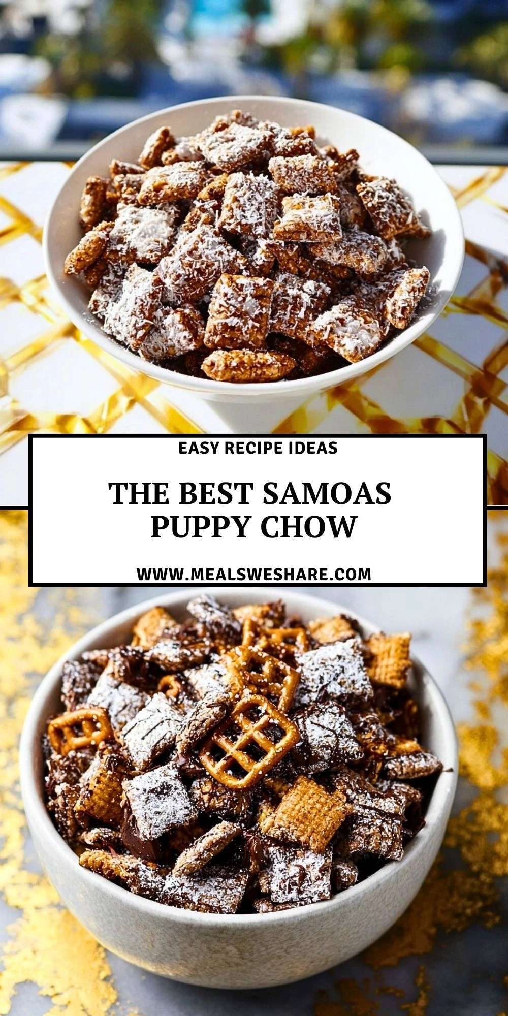 It is easy enough for a last-minute party bowl, fun enough for holiday gifting, and rich enough to satisfy every dessert craving. Whether you are making it for movie night, a bake sale table, or a homemade edible gift, this Samoas Puppy Chow brings big flavor with very little effort.