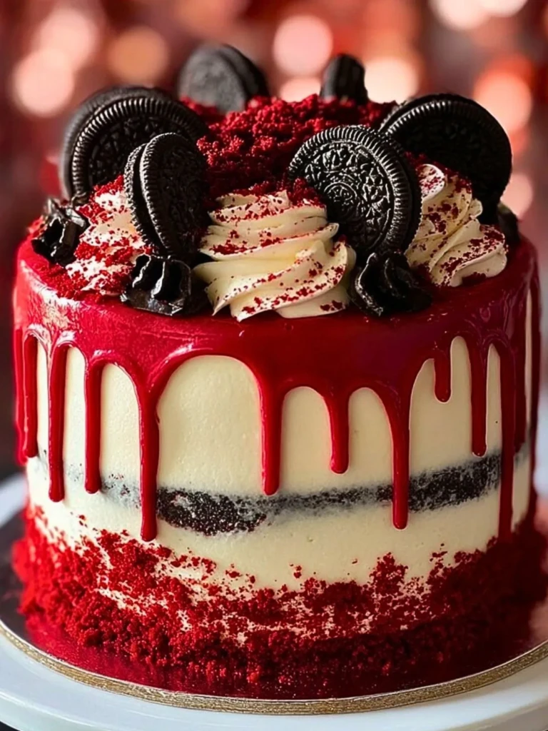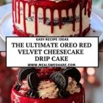 Keywords: red velvet cake, Oreo dessert, cheesecake cake, drip cake, birthday cake, easy recipe, dessert idea, holiday cake