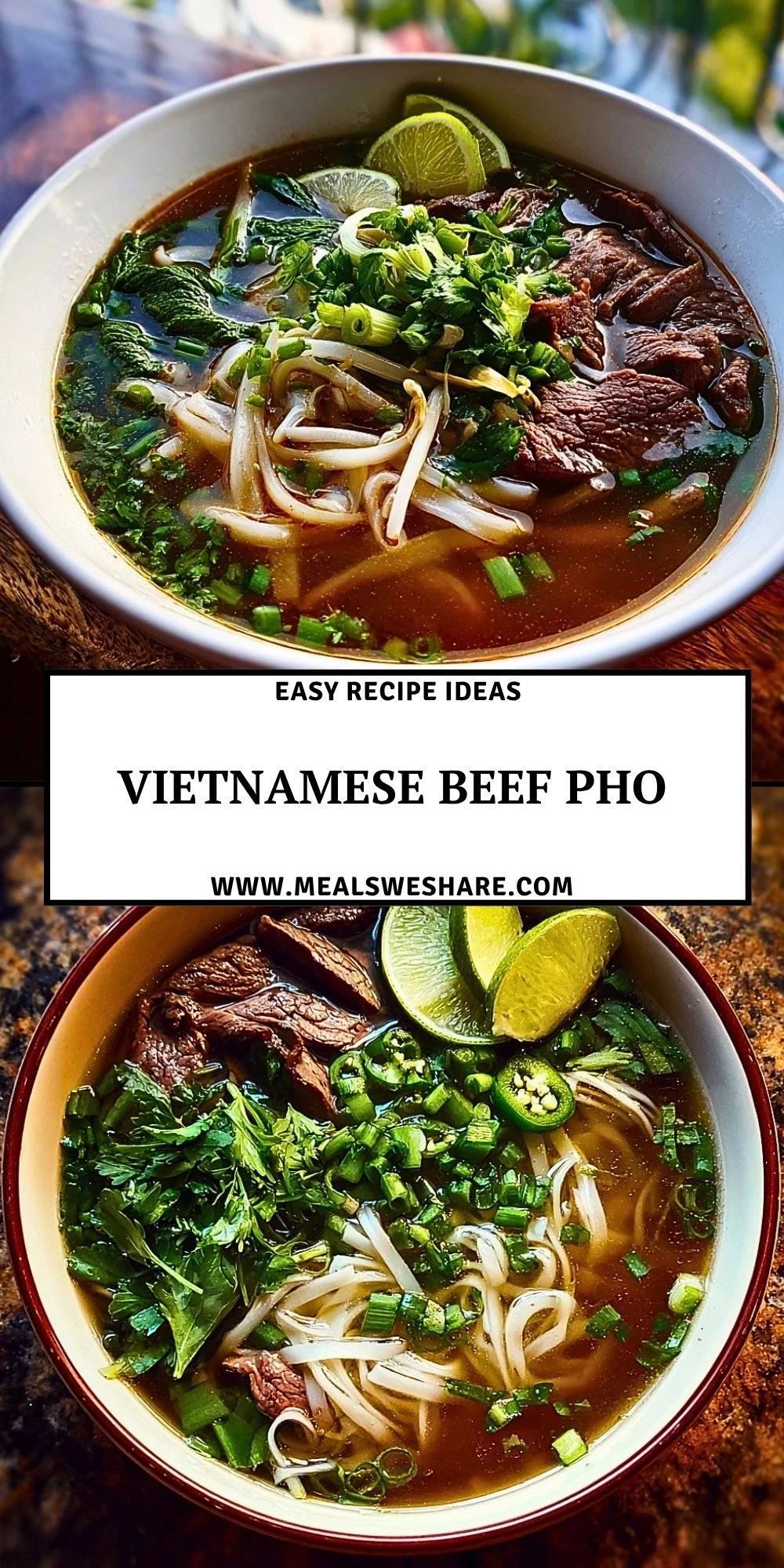 Keywords: Vietnamese beef pho, pho recipe, beef noodle soup, easy dinner, comfort food, homemade pho, noodle soup