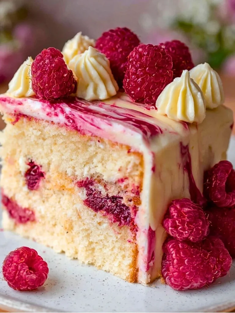 Absolutely! Frozen raspberries work wonderfully in this recipe. Just make sure you don’t thaw them before adding to the batter—this helps keep them from bleeding too much into the cake and maintains their shape. If using fresh raspberries, go for firm, ripe ones for the best texture and flavor.