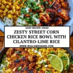 Keywords: chicken rice bowl, street corn, easy dinner, healthy lunch, meal prep, quick recipe
